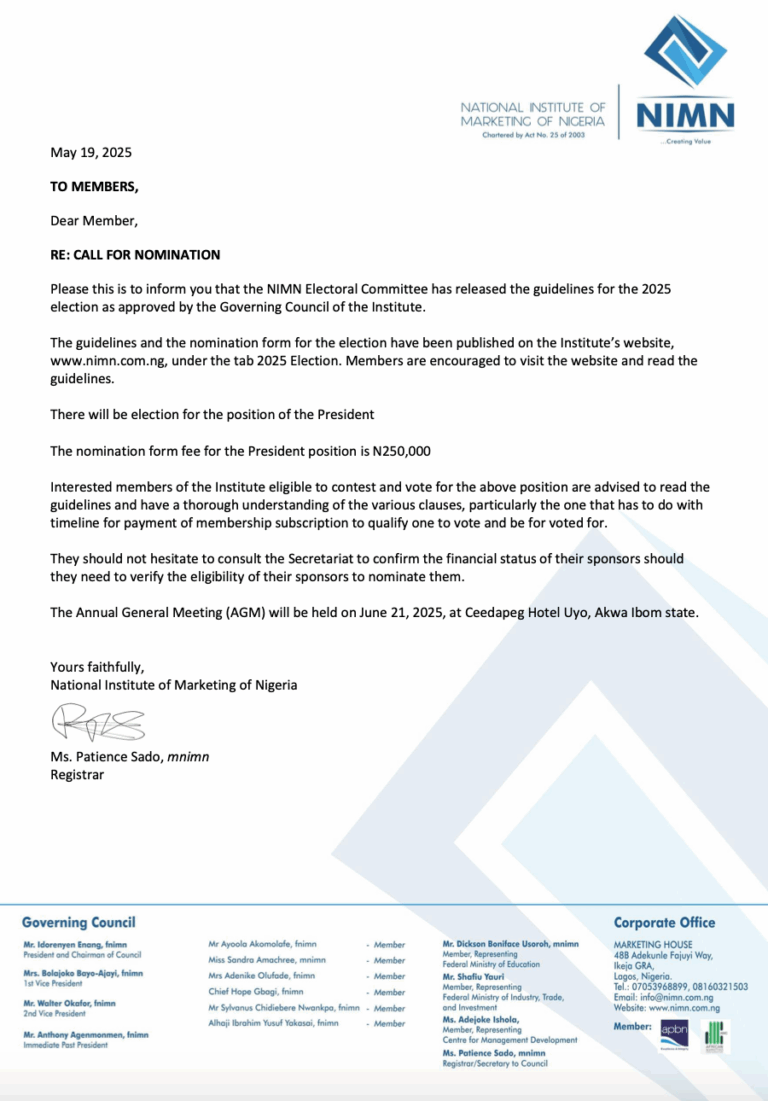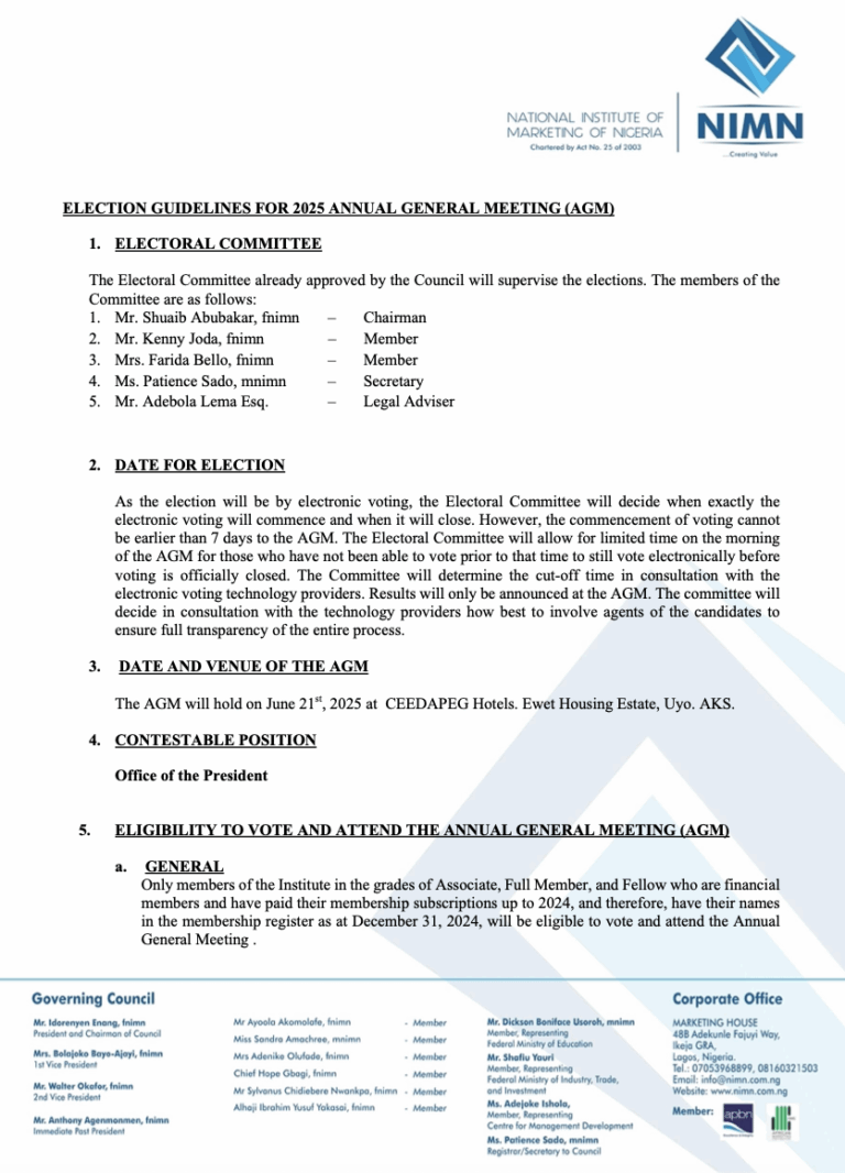 Election to hold between Monday 10th June starting from 12.00noon and ends Saturday 22nd June at 9.00am.